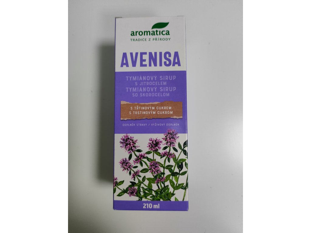 Viaczložkový skorocelový bylinný sirup s obsahom extraktu z bylín (tymiáu, materinej dúšky, sladkého drievka). 1 polievková lyžica obsahuje 0,67 g rastlinných extraktov. Viac o produkte Aromatica AVENISA Skorocelový sirup viaczložkový