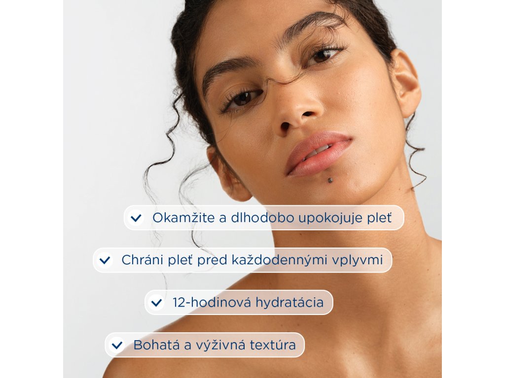 Rehydratačný nočný krém. Intenzívne hydratuje citlivú pokožku, obnovuje a pomáha posilňovať kožnú bariéru počas spánku. Pre upokojenú pokožku po prebudení.