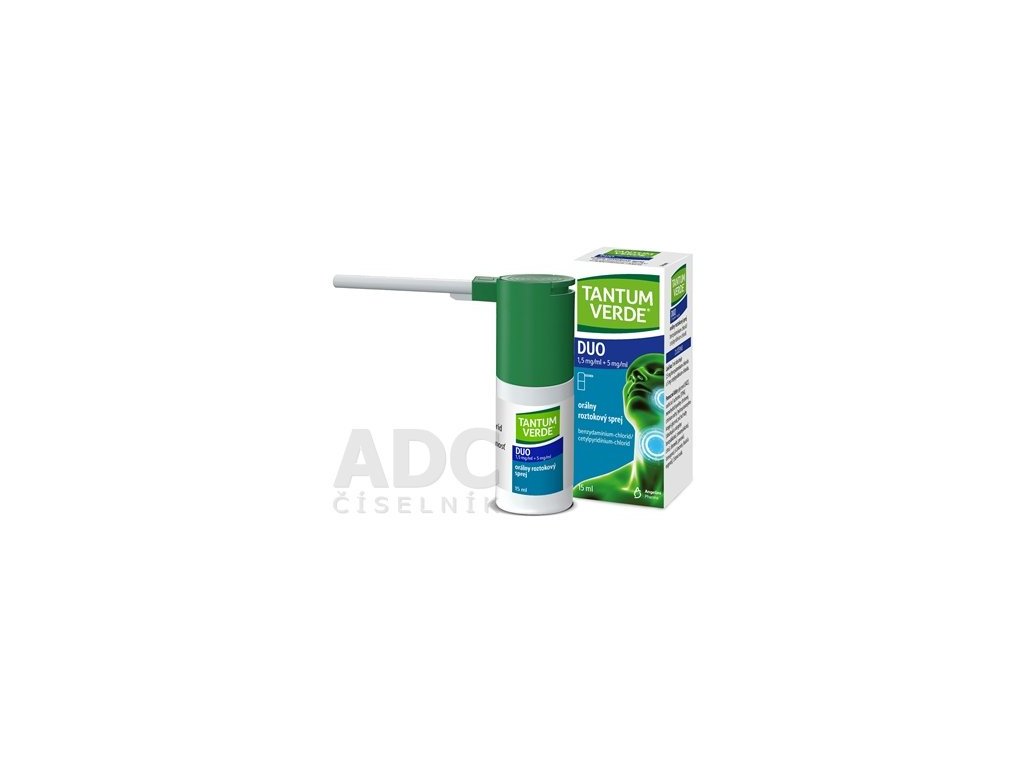Tantum Verde Duo je sprej na hrdlo a ústnu dutinu, ktorý pomáha už pri prvých príznakoch bolesti, podráždenia, škriabania či pálenia v hrdle. Má antiseptický účinok, takže ničí vírusy, baktérie aj kvasinky a zároveň zmierňuje bolesť a zápal. Praktický ústny aplikátor umožňuje nasmerovať sprej priamo na postihnuté miesto. Liek má jemnú mätovú príchuť, neobsahuje cukor ani alkohol a je vhodný aj pre ľudí s cukrovkou. Používa sa u dospelých, dospievajúcich a detí od 6 rokov.